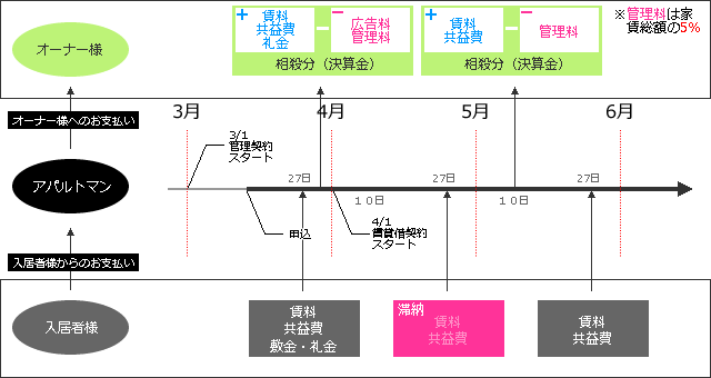 ※滞納が発生しても、毎月10日にアパルトマンからお支払します。